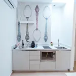 La cocina cuenta con minibar, además de hervidor eléctrico, nevera y cristalería.